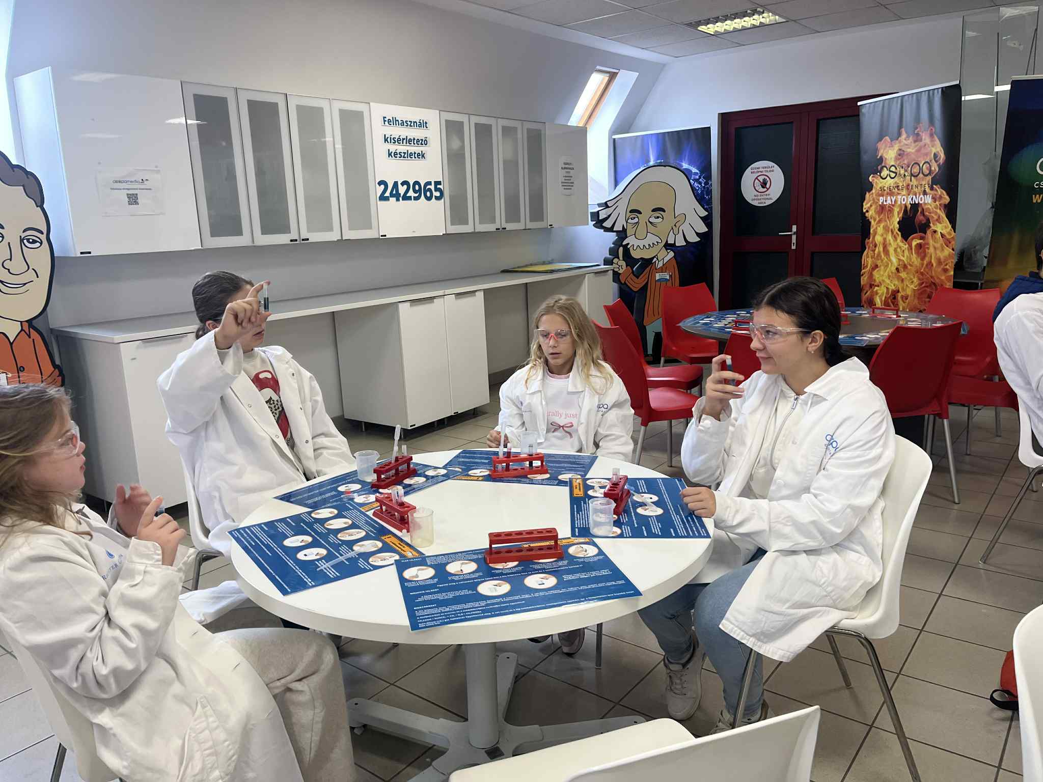 Наставнице хемије Марина Бућан и Милица Живковић активно су учествовале у лабораторијском раду са ученицима, док је наставник физике Срђан Плавшић водио занимљиве огледе из области електрицитета, гравитације и кретања материјала.