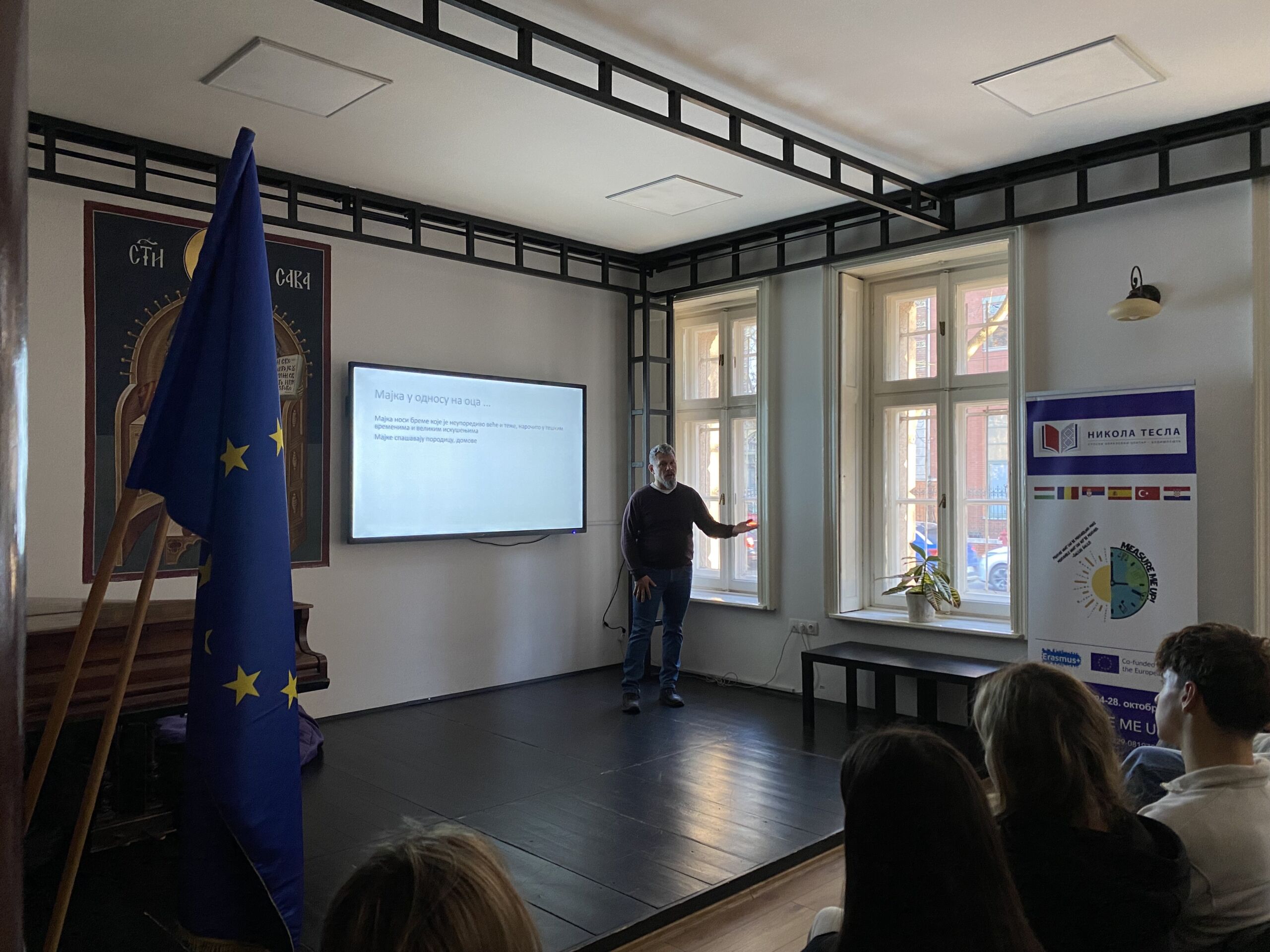 У петак, 28. новембра, у библиотеци наше школе одржано је изузетно предавање вајара Ђорђа Зечевића, посвећено приказу мајке у уметничкој традицији. Полазећи од Пикаса и Рембранта, предавач је открио како су велики уметници кроз векове представљали лик мајке као симбол снаге, љубави и жртве.