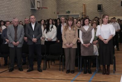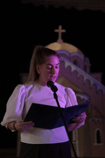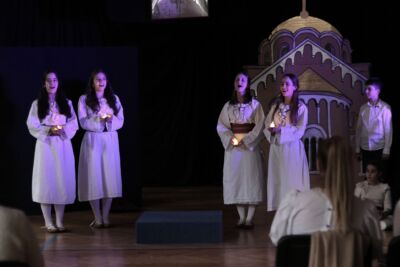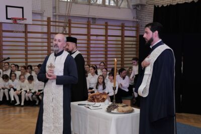 На самом почетку програма школски хор који је састављен од ученика наше основне школе и гимназије, отпојао је под диригентском палицом професорке Оливере Младеновић Мунишић тропар Светога Саве: „Пути воводјашчаго в жизањ”.