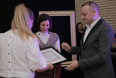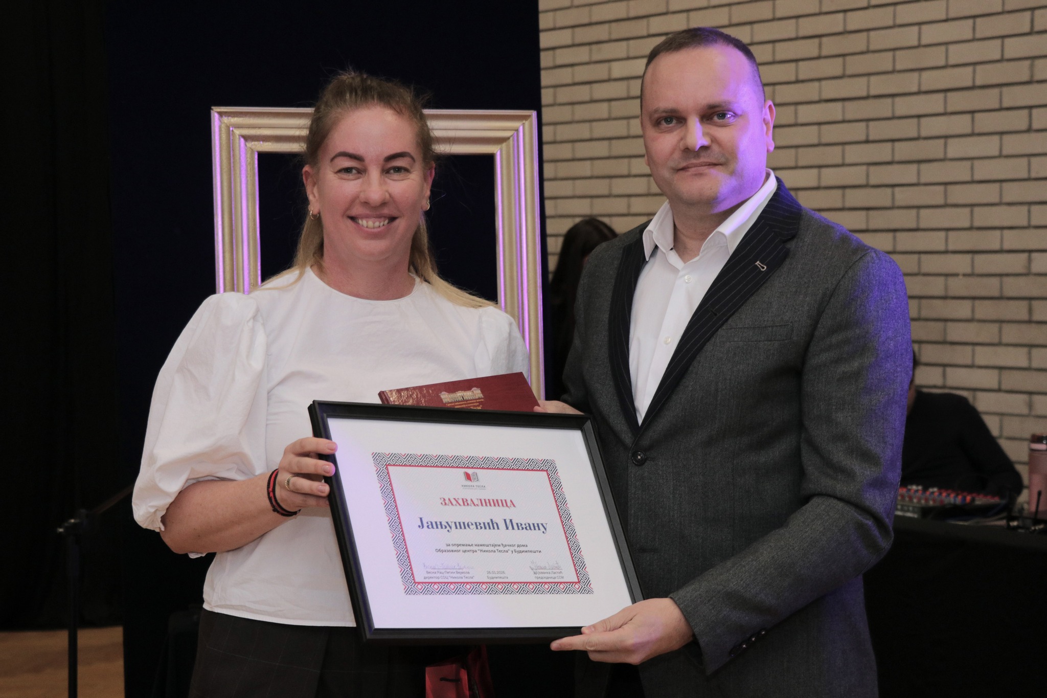 Tом прилком, након свог говора, дриректорка је уручила захвалницу са флашом вина Ивану Јањушевићу који је поклонио намештај нашим гимназијалцима смештеним у Текелијануму.