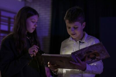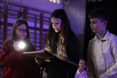 После овог чина уследио је наступ драмске секције наше школе. Наши талентовани ученици приказали су причу о деци која на тавану музеја проналазе стару књигу о животу младог принца Растка Немањића. Он ће после замонашења понети име Сава. У међувремену оживљени лик Светог Саве ступа у волшебан разговор са ученицима који много занимљих детаља сазнају о животу нашег светитеља.  Учесници програма су били основци и гимназијалци: Мијат Пешић, Ираида Вукадиновић, Пана Балог, Мила Бадонич, Лена Радојковић, Никола Марковић, Магдалена Анић, Андреа Брезић и Стеван Арсић. Текст и сценарио је урадила професорка Зорица Јурковић Ембер, иначе директорка Културног и медијског центра „Српски венац”. Током представе одевене у народну ношњу Радмила и Сања Вуковић, Наташа Симић и Мила Поздер, веома енергично и емотивно су извеле песму „Расти, расти мој зелени боре”.
